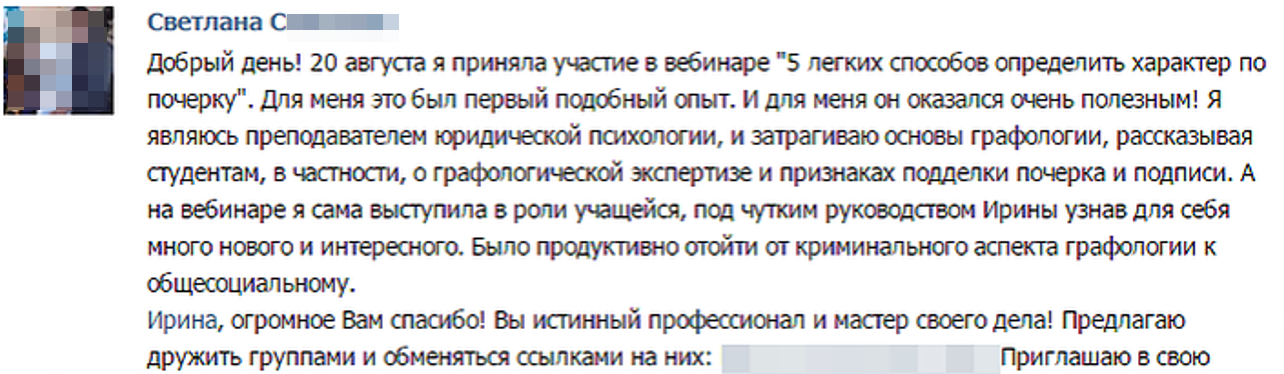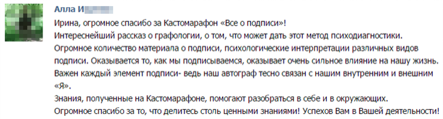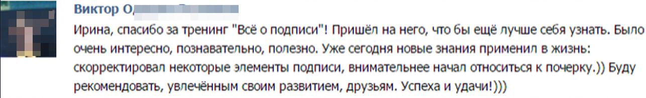 Регистрируйтесь сейчас >> и получите от меня интенсив ПСИХОЛОГИЯ ПОЧЕРКА в подарок сразу и СПЕЦИАЛЬНЫЙ ПОДАРОК - мини-книгу "Что может сказать о человеке его подпись" для участников онлайн